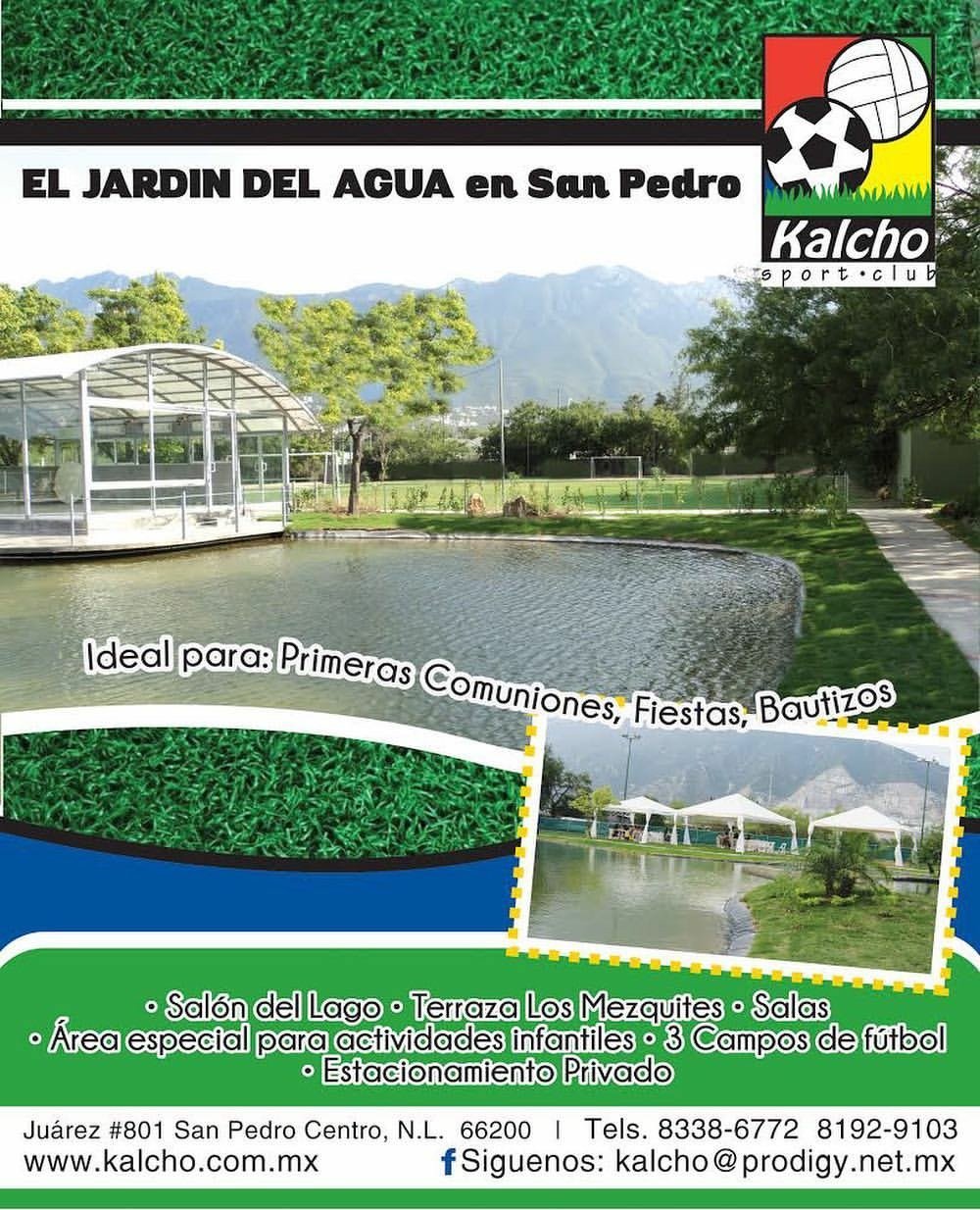 3) Jardín del Agua en Kalcho Valle Salón del Agua, Salón climatizado con una vista espectacular hacia el lago con capacidad para 70 personas y con una terraza integrada con capacidad de 30 personas. Mezquites, terraza con vista a nuestro hermoso jardín y lago, sombreada por mezquites y zona fresca con capacidad para 130 personas. Palmeras, área de asadores con vista a Sierra Madre, a un costado del lago, ideal para actividades de entretenimiento. Capacidad para 120 personas.